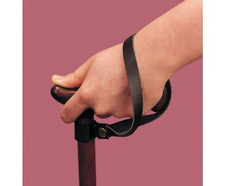 The leather handle attaches to the stick with a hook and loop strap. Saves putting down or dropping the stick when using your hand e.g. when shopping.