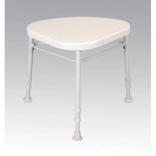 This shower stool has an aluminium frame and moulded plastic seat . it is lightweight and corrosion resistant.
